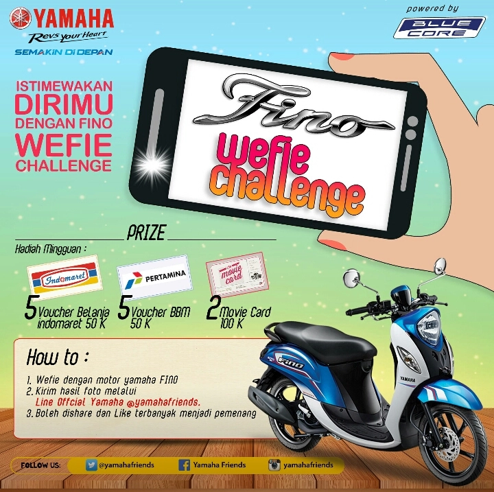 motorrio.com – Ada kabar bagus nih buat yang suka Wefie bareng temen atau keluarga, Yamaha mengadakan FINO WEFIE CHALLENGE yang diselenggarakan sampai 30 Oktober 2016 dan asyiknya lagi hadiahnya dibagi tiap minggu lho!!